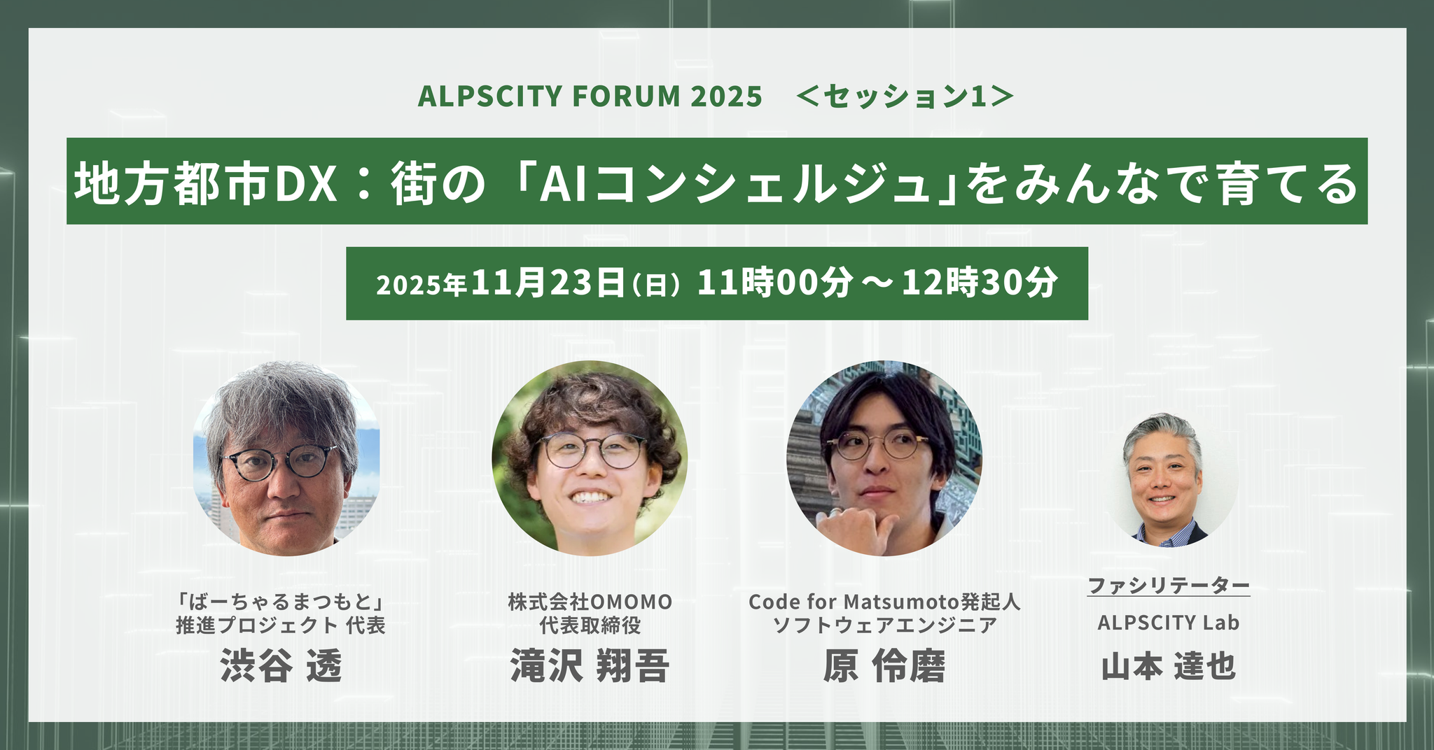 松本では現在、「松本ファン創出」プロジェクトが進められています。まちの文脈を理解して案内する「AIコンシェルジュ」の実装を通じて、観光地図やイベント情報の自動生成、市民の声を反映した改善サイクルなど、新しいコミュニケーションの形が生まれています。
